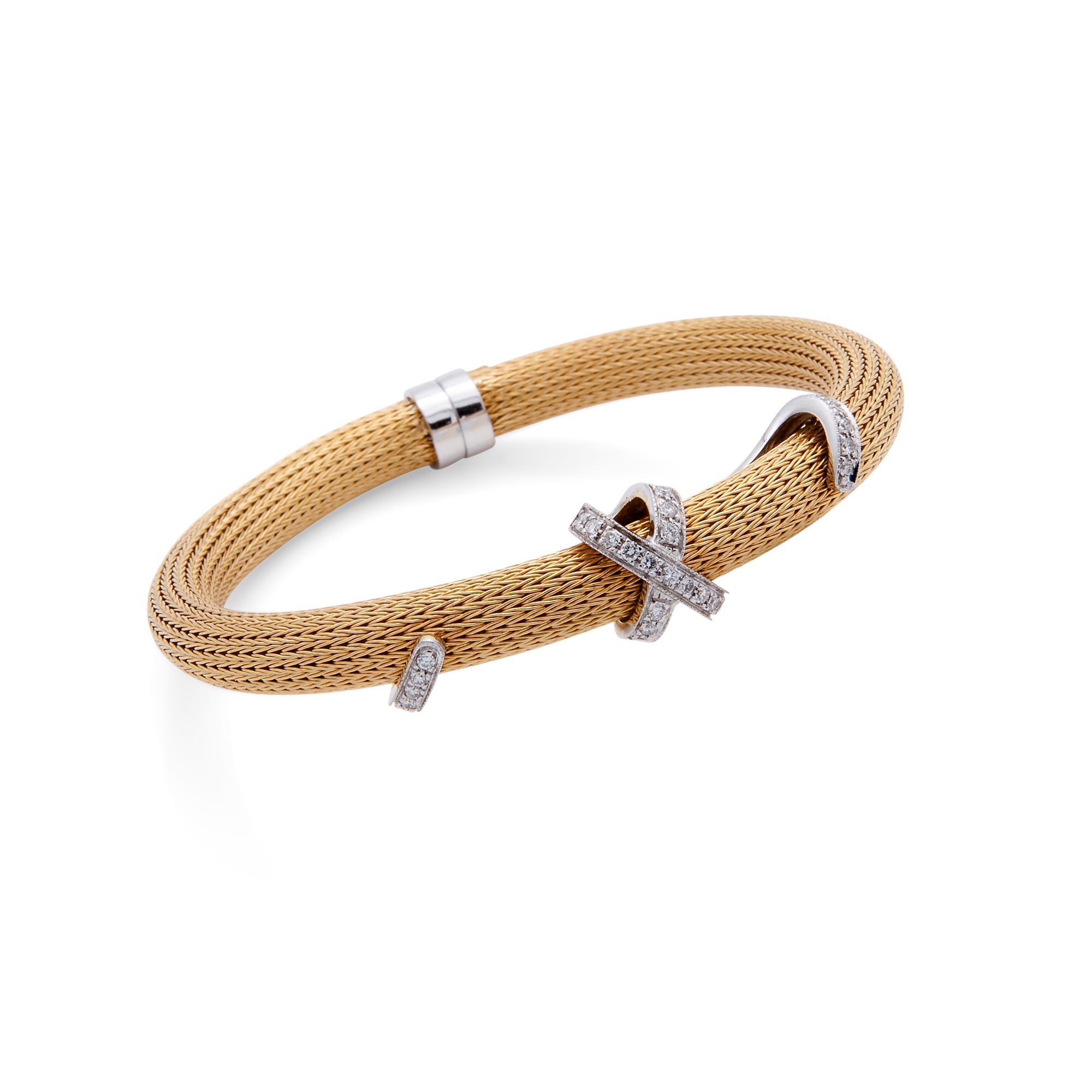 Alfieri & St John, Bracciale semirigido in oro giallo e bianco con brillanti