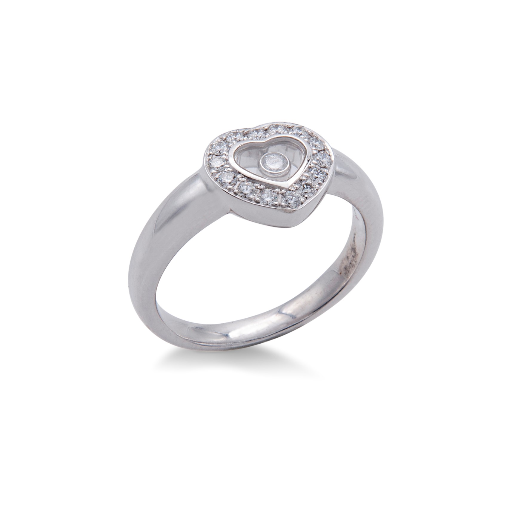 Oro bianco 750/000, brillanti, peso complessivo gr 7,10, Happy Diamonds, con custodia.