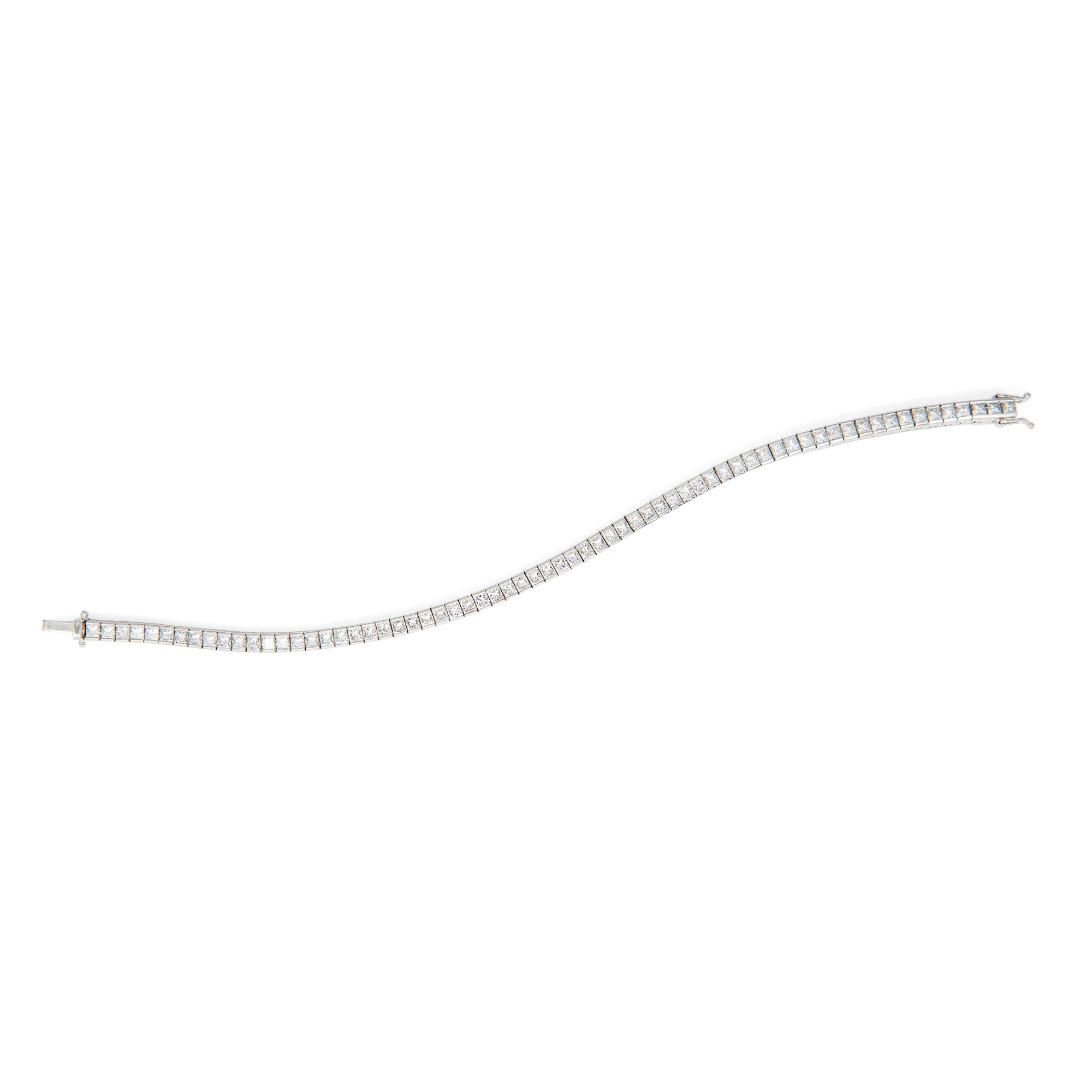 Bracciale tennis in oro bianco, diamanti in taglio princess.