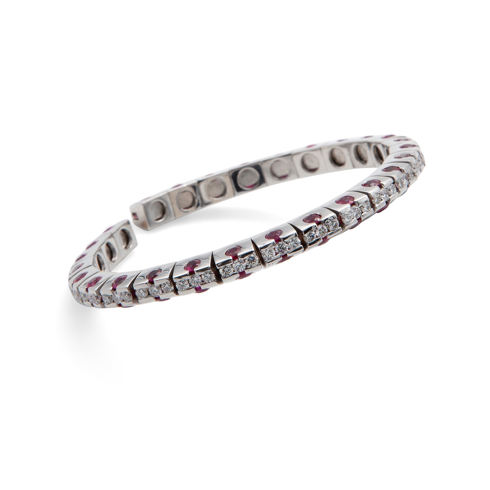 Oro bianco 750/000, Brillanti ct. 2,90 ca, rubini ct. 4,50. Peso complessivo gr. 33,3.