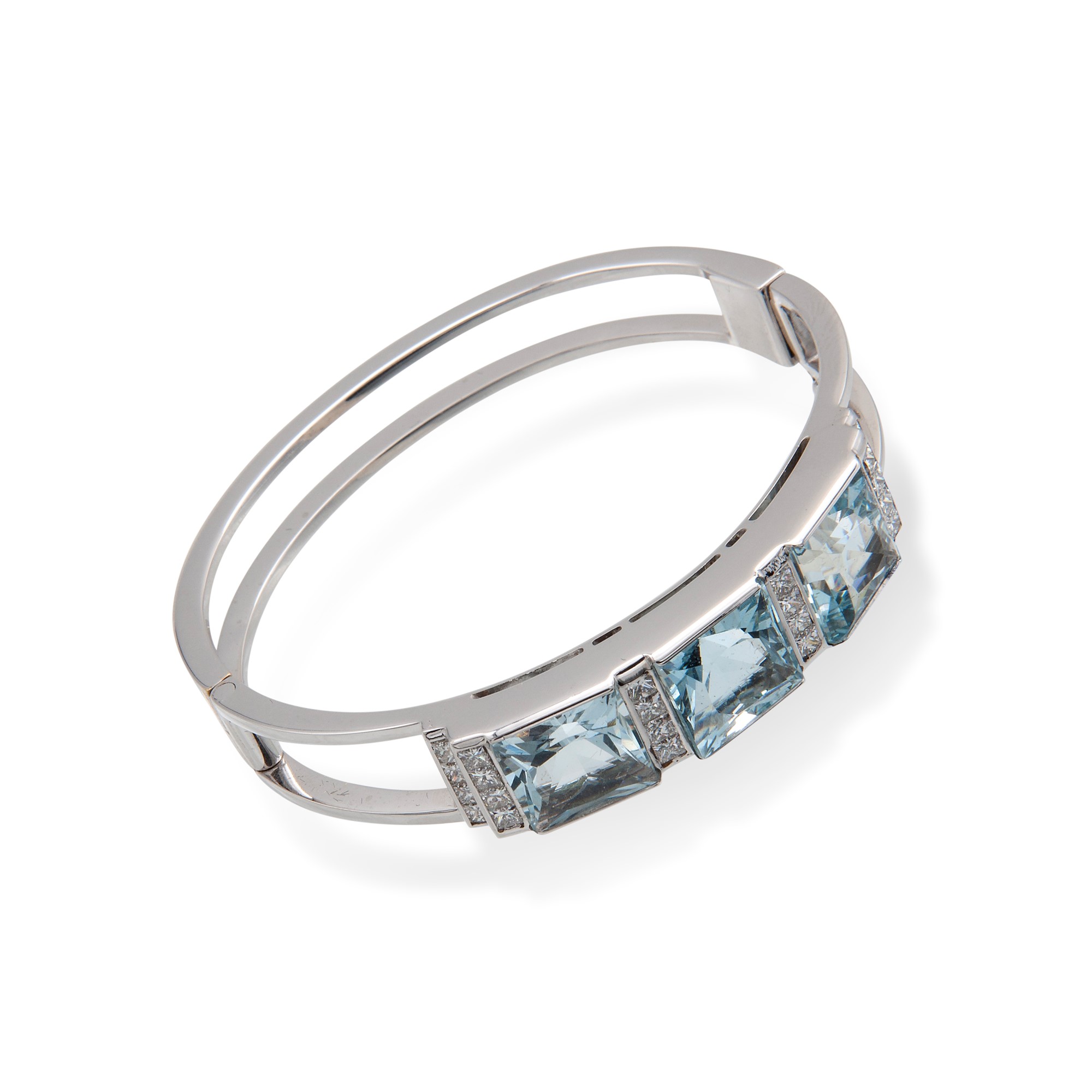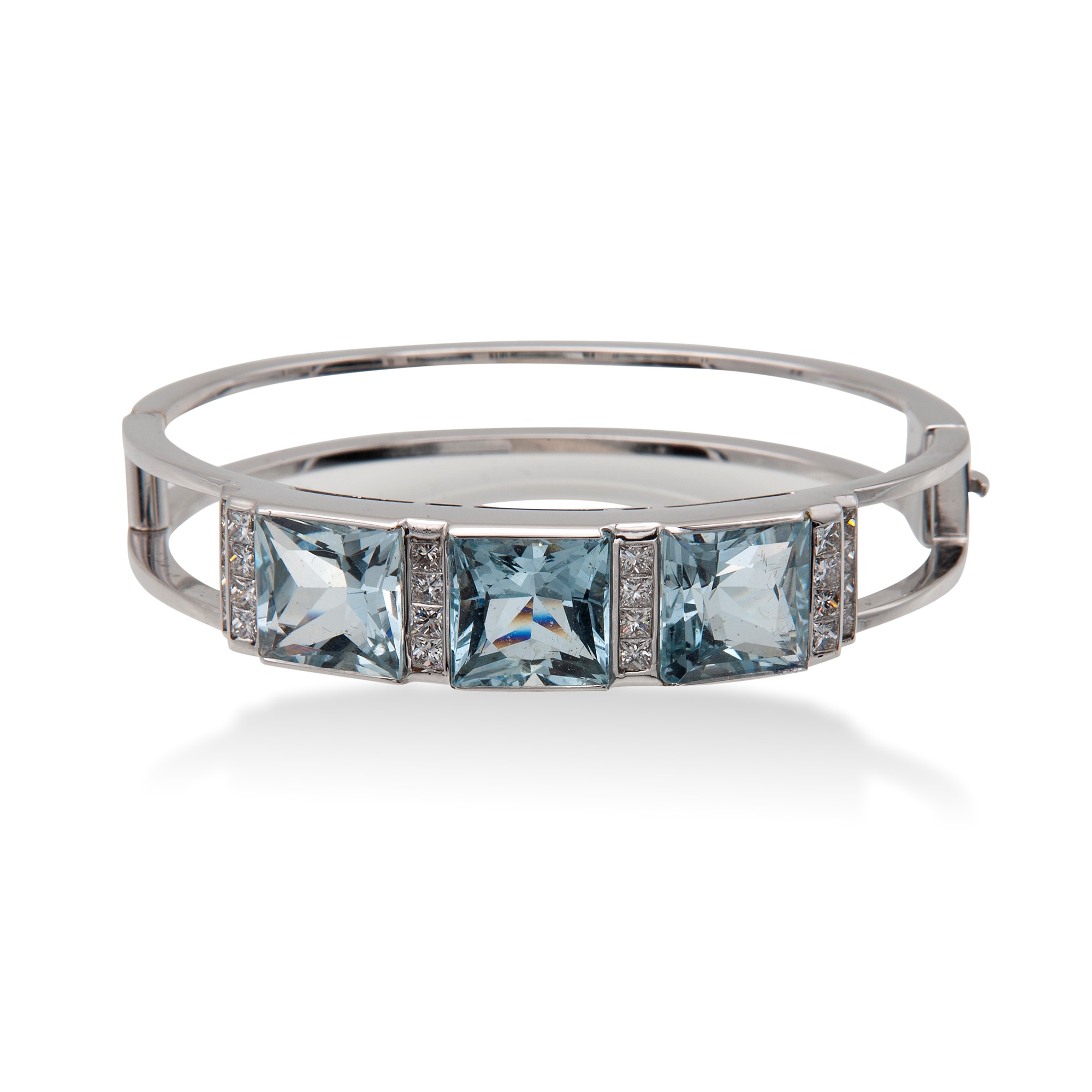 Bracciale rigido in oro, acquemarine, diamanti taglio princess