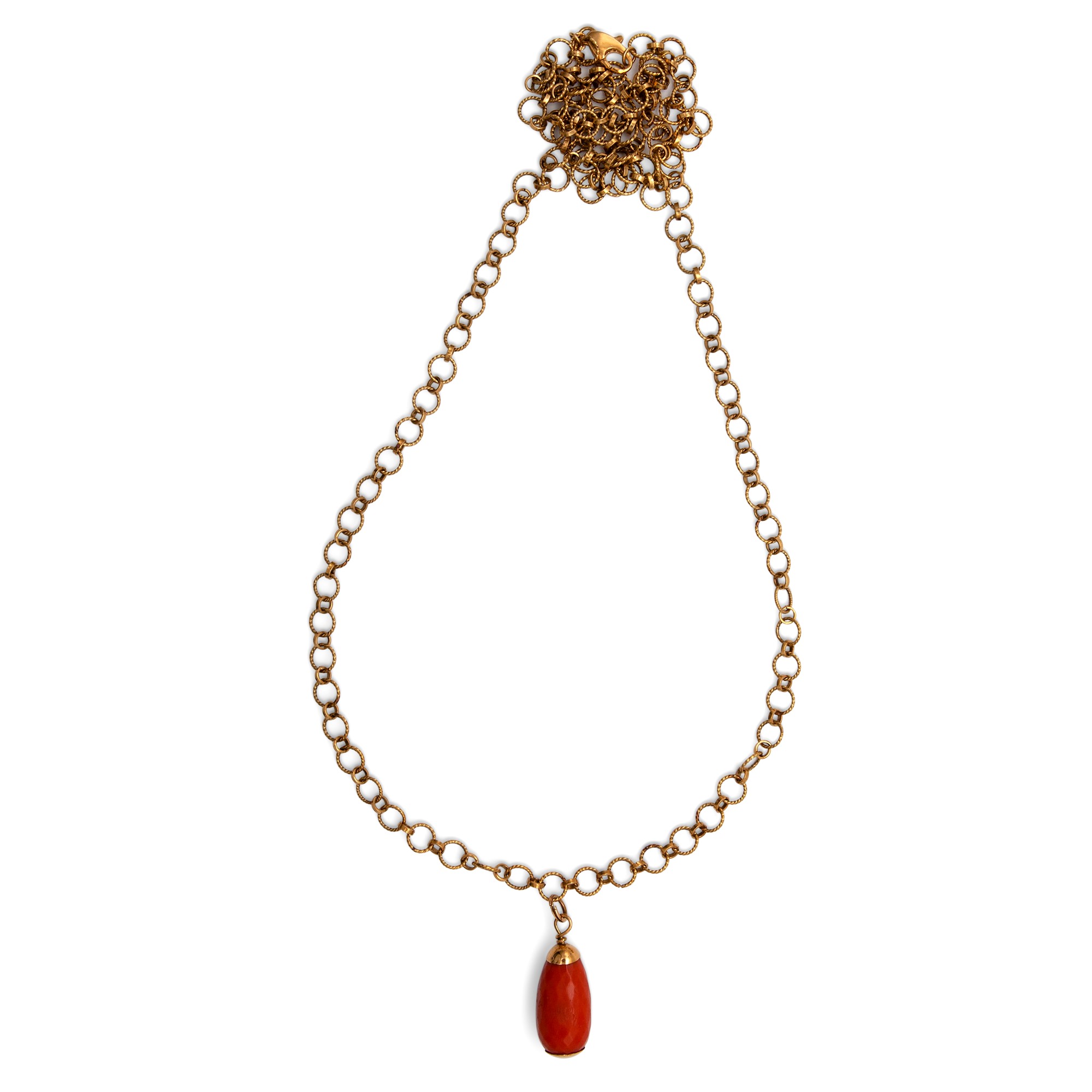 Oro giallo 750/000, pendente in oro e corallo del Mediterraneo, anni '40/'50. Peso complessivo gr.37,8.