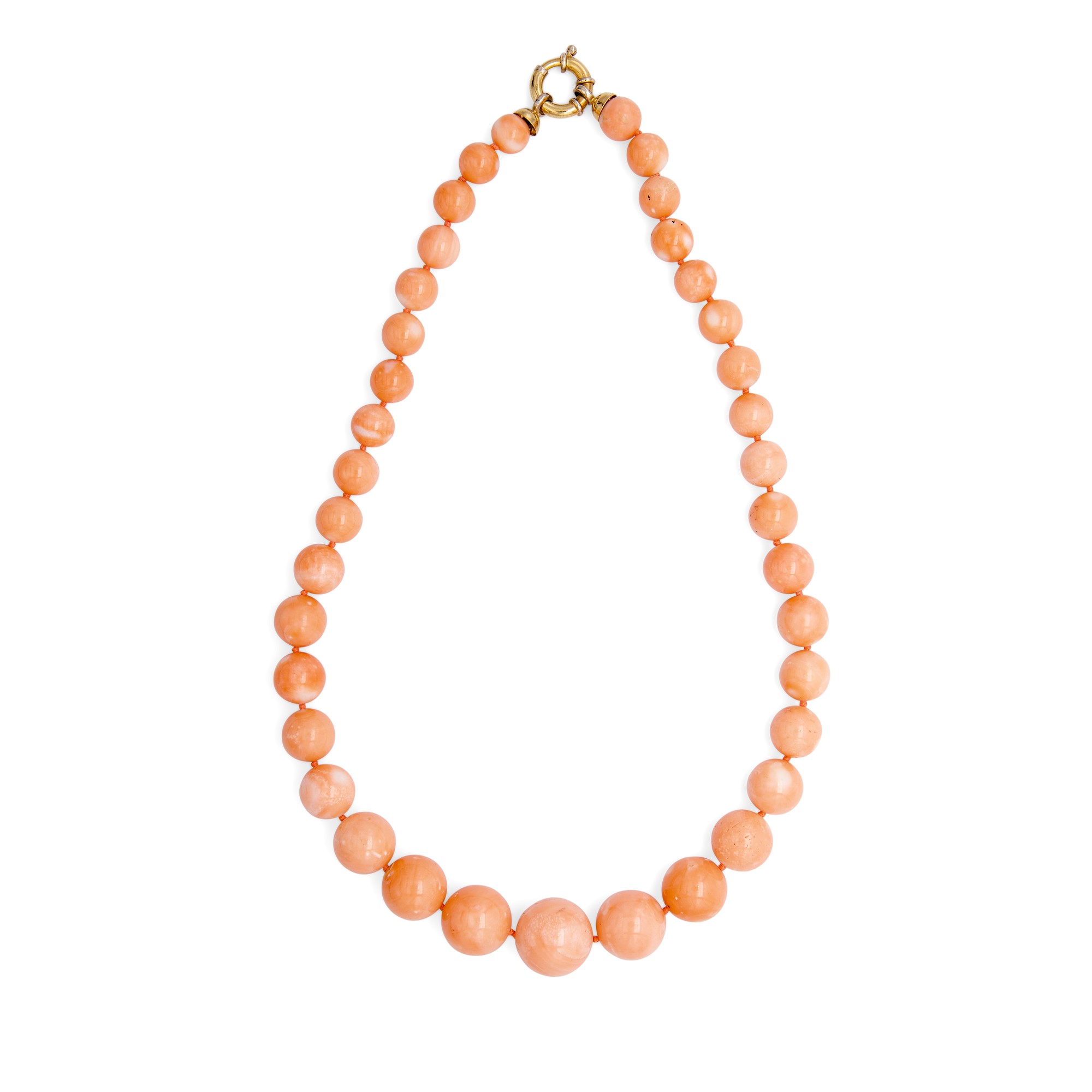 Oro giallo 750/000, corallo cerasuolo in taglio sferico mm.11/20, peso complessivo gr. 123,80.