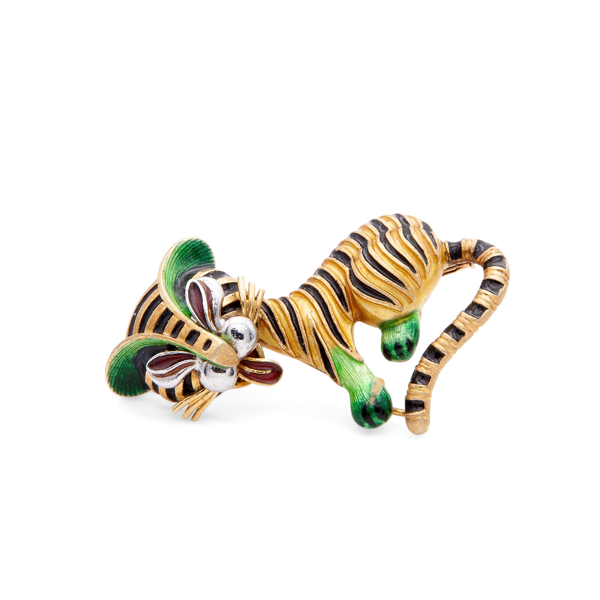 Lotto 397 | Spilla a tigre degli anni '50 in oro e smalti