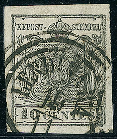 ANTICHI STATI - Lombardo Veneto - 1850 - 10 cent - stampa difettosa a destra da bordo foglio (2)