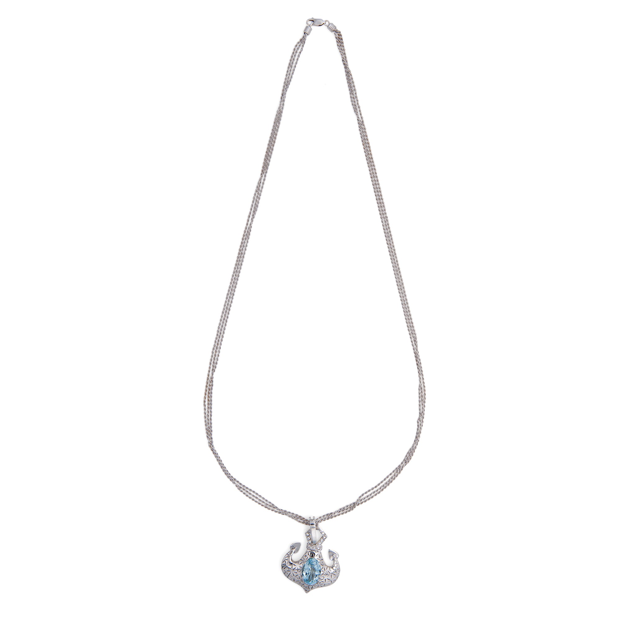 Oro bianco 750/000, acquamarina ovale ct 6 ca, peso complessivo gr. 28,90.