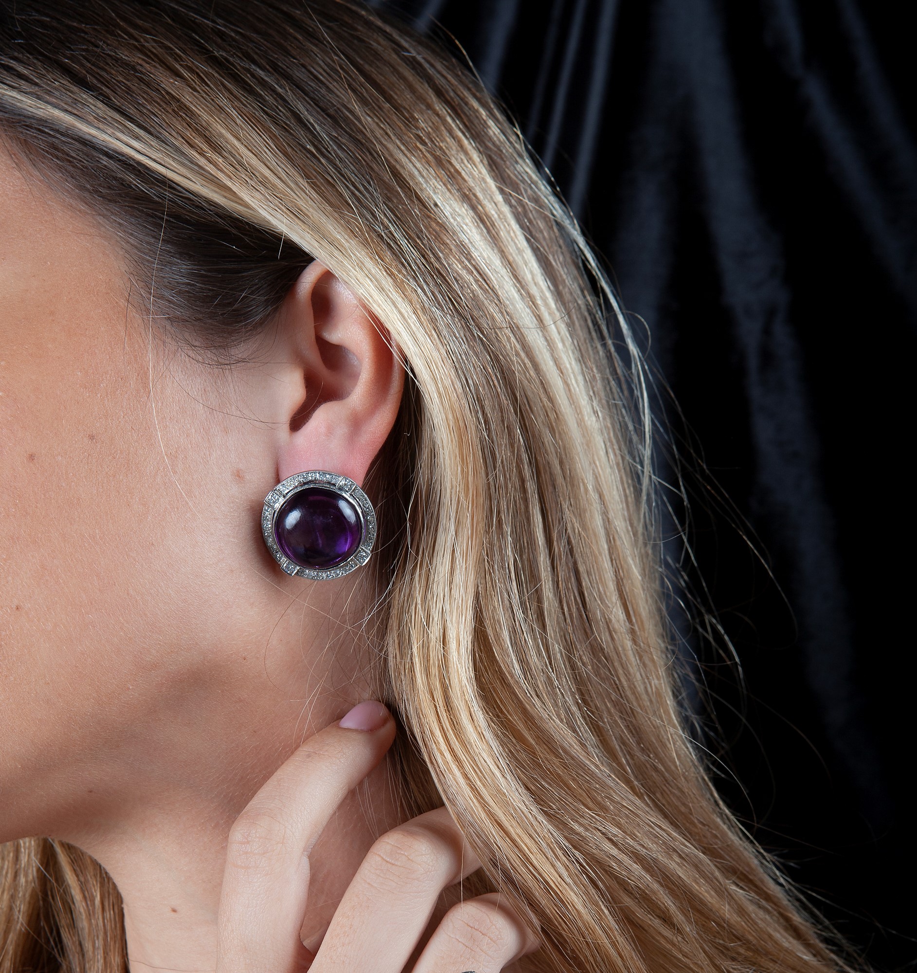 Oro bianco 750/000, ametiste taglio cabochon ct. 30 ca, brillanti ct. 1,20 ca.