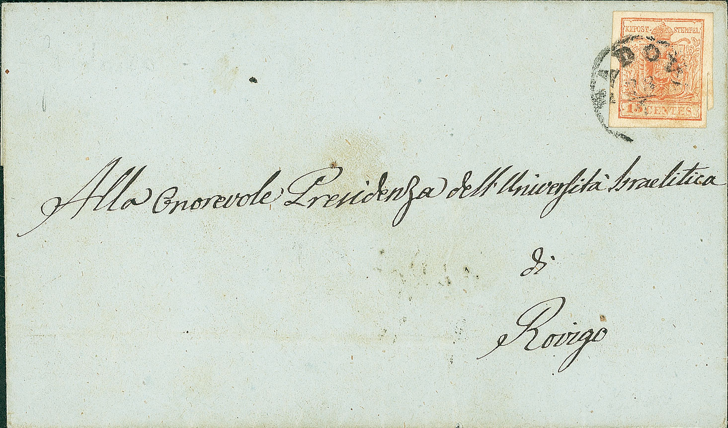 ANTICHI STATI - Lombardo Veneto - 15 cent - lettera da Padova a Rovigo del 28.7.58 - indirizzata alla Università Israelitica (20)