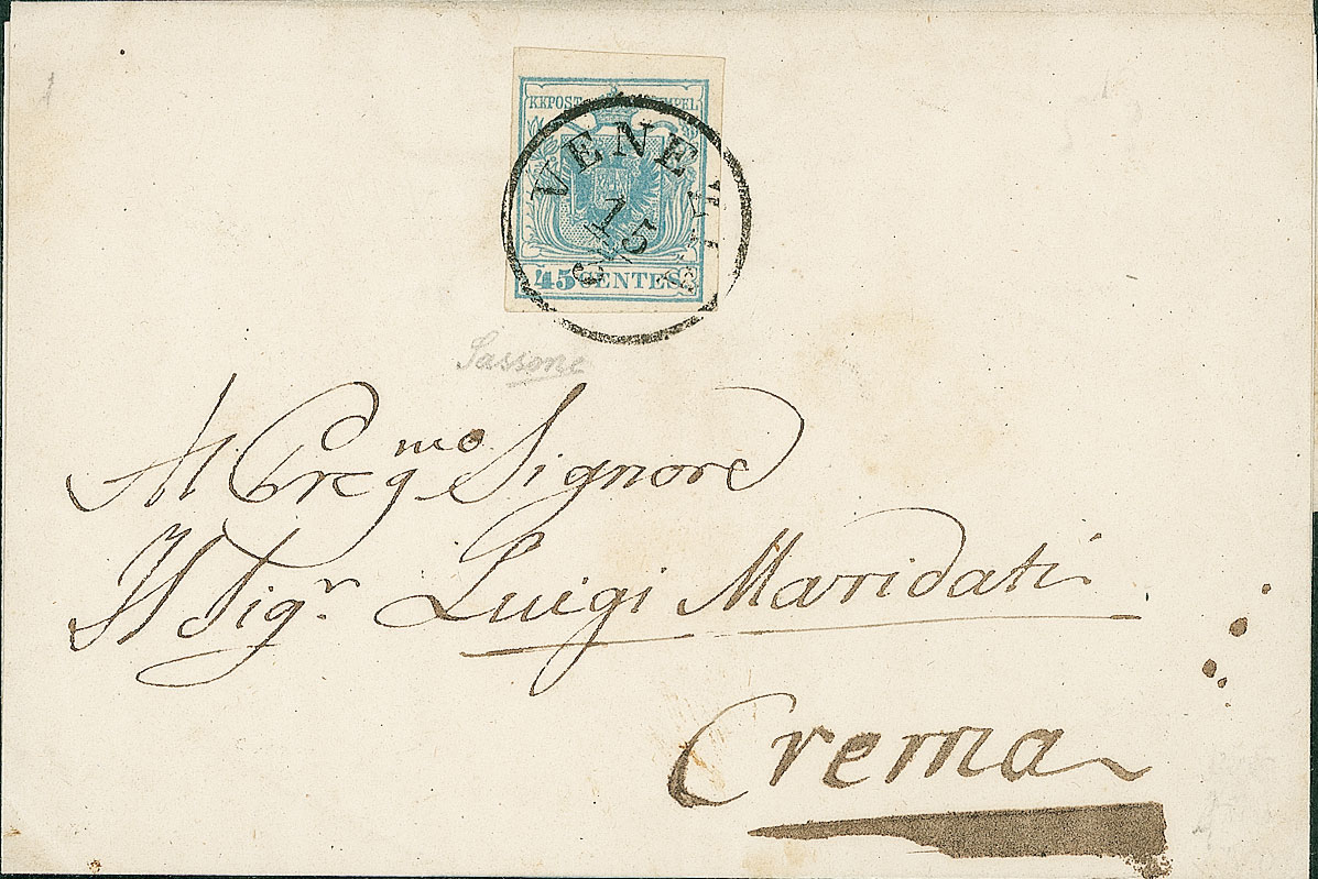 ANTICHI STATI - Lombardo Veneto - 45 cent - involucro di lettera da Venezia a Crema (10 - 325)