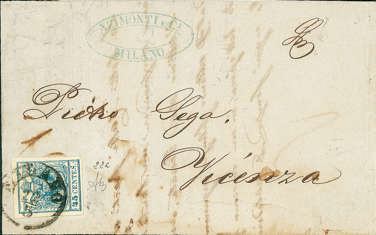 ANTICHI STATI - Lombardo Veneto - 45 cent - involucro a fascetta di lettera da Milano a Vicenza (22c)