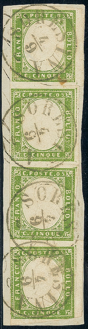 Lotto 33 | ANTICHI STATI - Lombardo Veneto - Soresina 4.9 - striscia di quattro del 5...