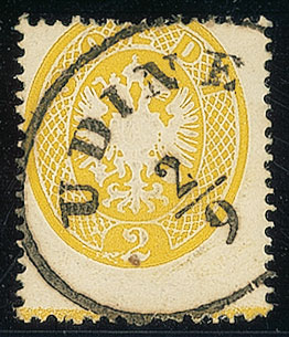 ANTICHI STATI - Lombardo Veneto - 1863 - 2 soldi - dentellatura orizzontale spostata con riga di colore in basso (36c - non quotato)