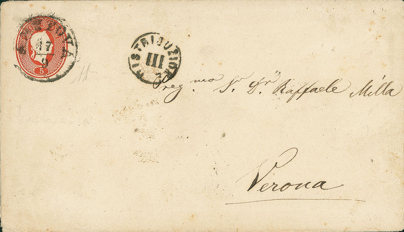 ANTICHI STATI - Lombardo Veneto - 5 soldi - Busta postale da Mantova a Verona...