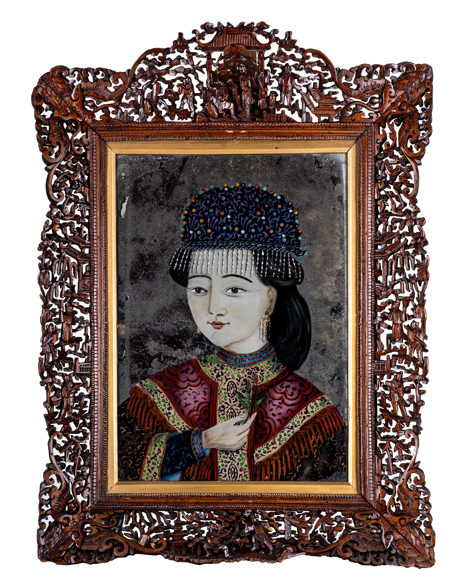 Due dipinti su specchio cinesi raffiguranti imperatori