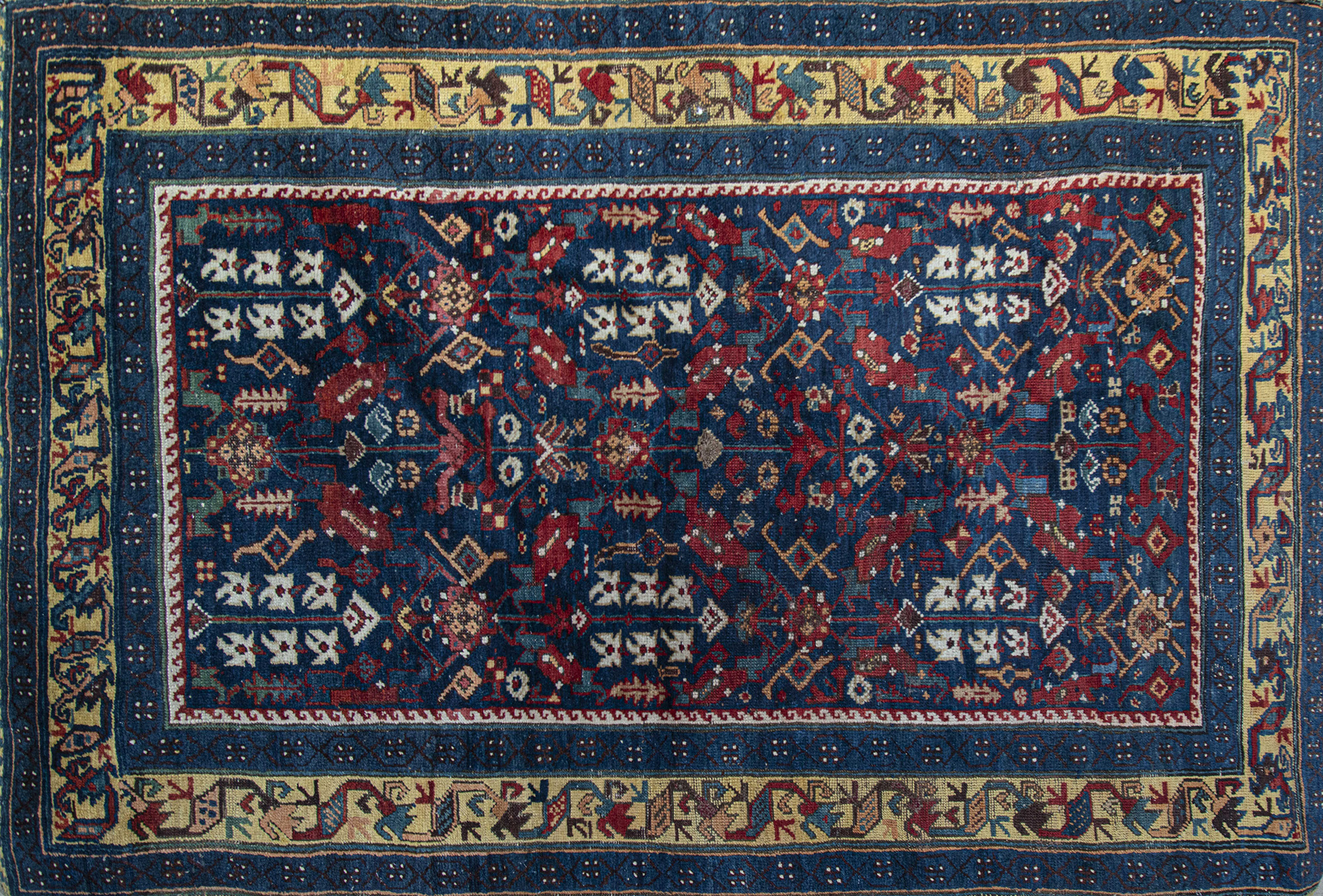 Tappeto caucasico a fondo blu