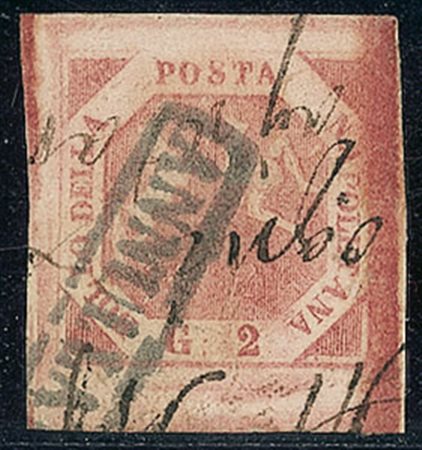 ANTICHI STATI - Napoli - 1858 - 2 grana rosso mattone - scritte a penna (6c -...