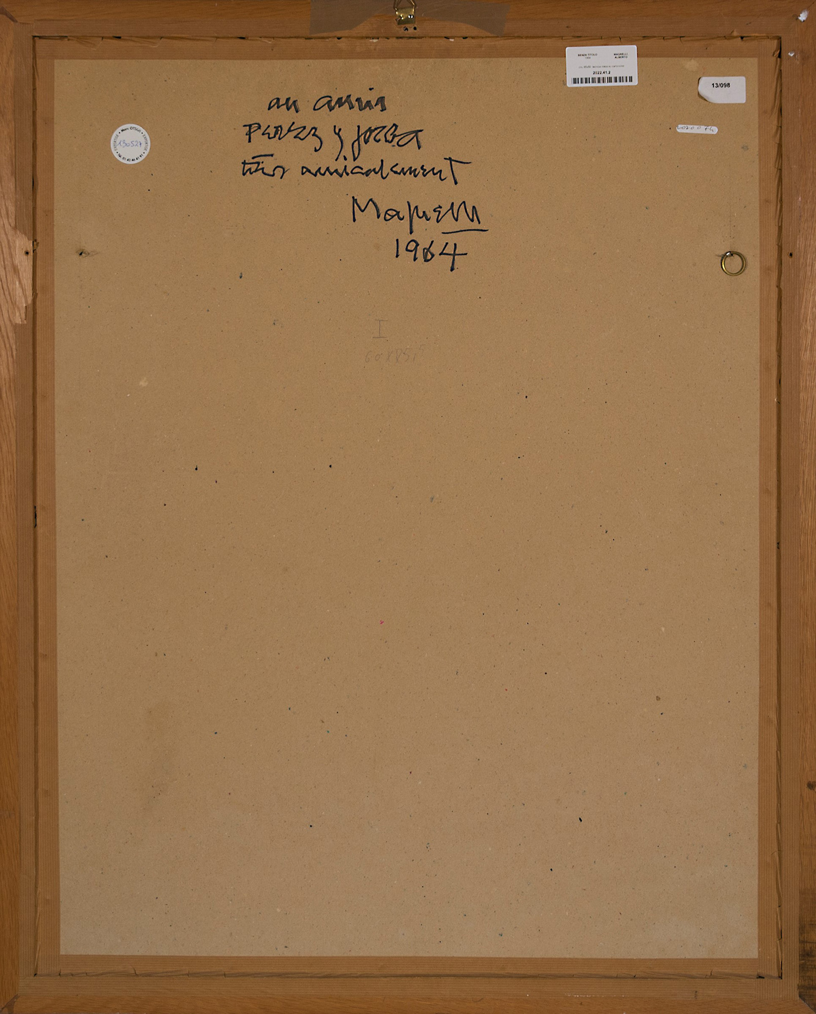 firma in basso a sinistra, firma data e dedica ad personam al retro