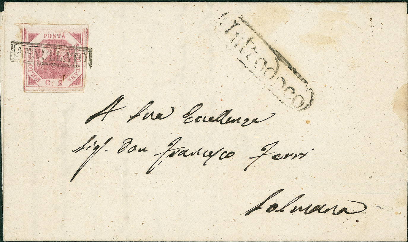 Lotto 81 | ANTICHI STATI - Napoli - 2 grana rosa lilla vivo - lettera da Antrodoco a...
