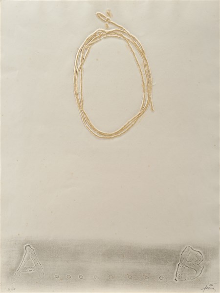 Antoni Tapies "Cordill" 1972 acquaforte, carborundum a colori cm 77,5x58 Firmata