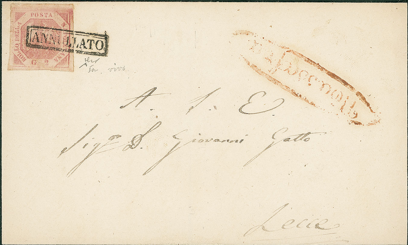 ANTICHI STATI - Napoli - 2 grana - lettera da Massafra a Lecce - Chiavarello (5a - 200+ punti 5)