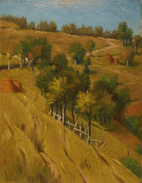 Antonio Calderara "Paesaggio" 1951 olio su tavola cm 18x14 Firmato al retro Timb