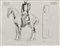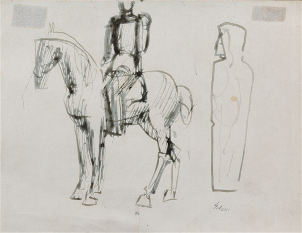 Mario Sironi "Cavallo e cavaliere e figura" 1949 circa china acquarellata su car