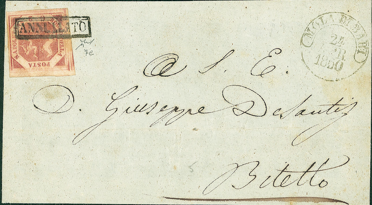 ANTICHI STATI - Napoli - 2 grana - frontespizio di lettera da Mola di Bari a...