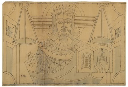 Fortunato Depero "Cristo del Popolo" 1954-55 china e acquerello su carta da luci