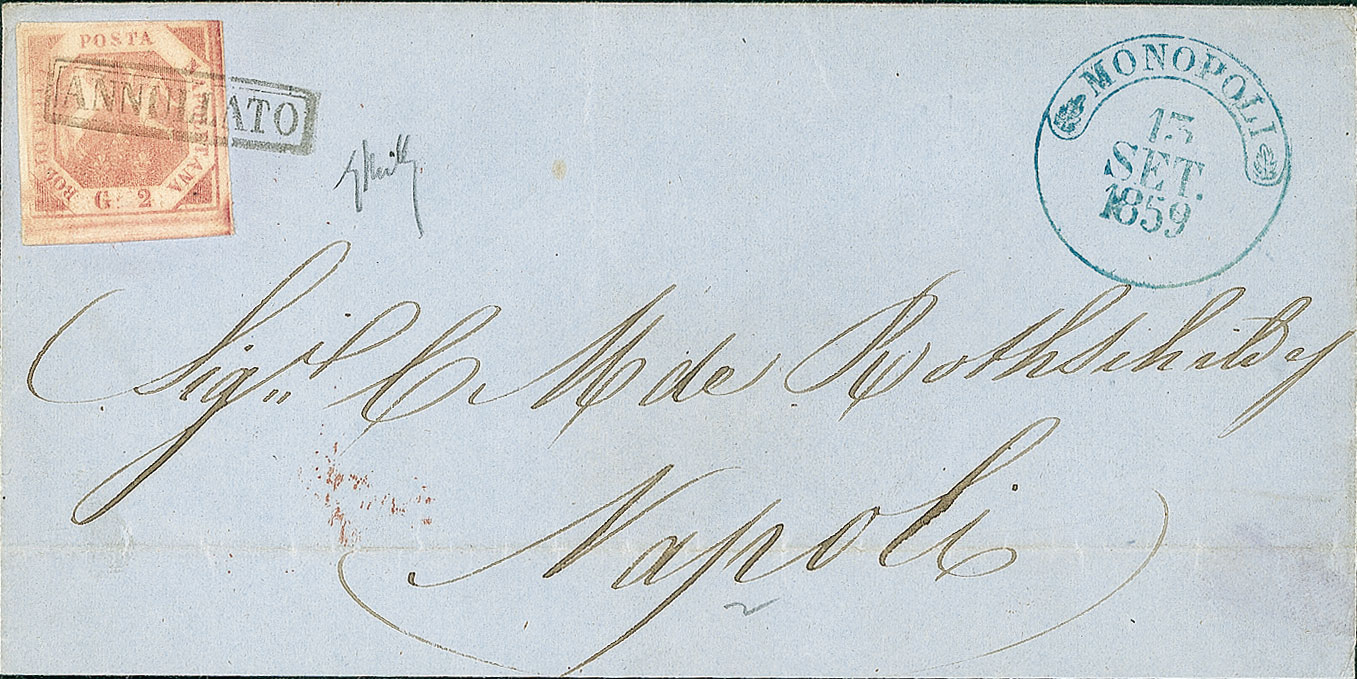 ANTICHI STATI - Napoli - 2 grana - lettera da Monopoli a Napoli del 13.9.59 -...