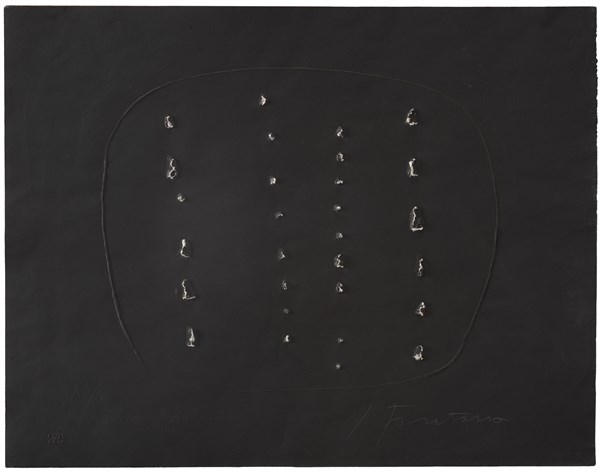 Lucio Fontana "Concetto spaziale" 1964 acquaforte con rilievo e buchi cm 50x63,5