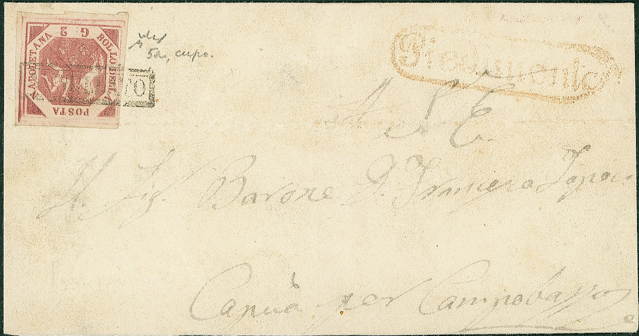 ANTICHI STATI - Napoli - 2 grana rosa lilla cupo - involucro di lettera da...