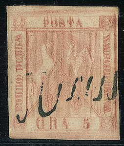 ANTICHI STATI - Napoli - 1858 - 5 grana - tripla incisione - Sorani + cert....