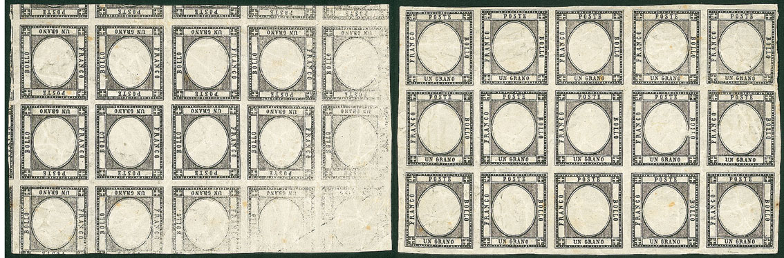 Lotto 138 | ANTICHI STATI - Napoli - 1861 - Prove - 1 grano - blocco di quindici senza...