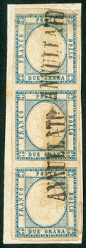 ANTICHI STATI - Napoli - Annullato - striscia verticale di tre del 2 grana (20 - 600+ punti 12)