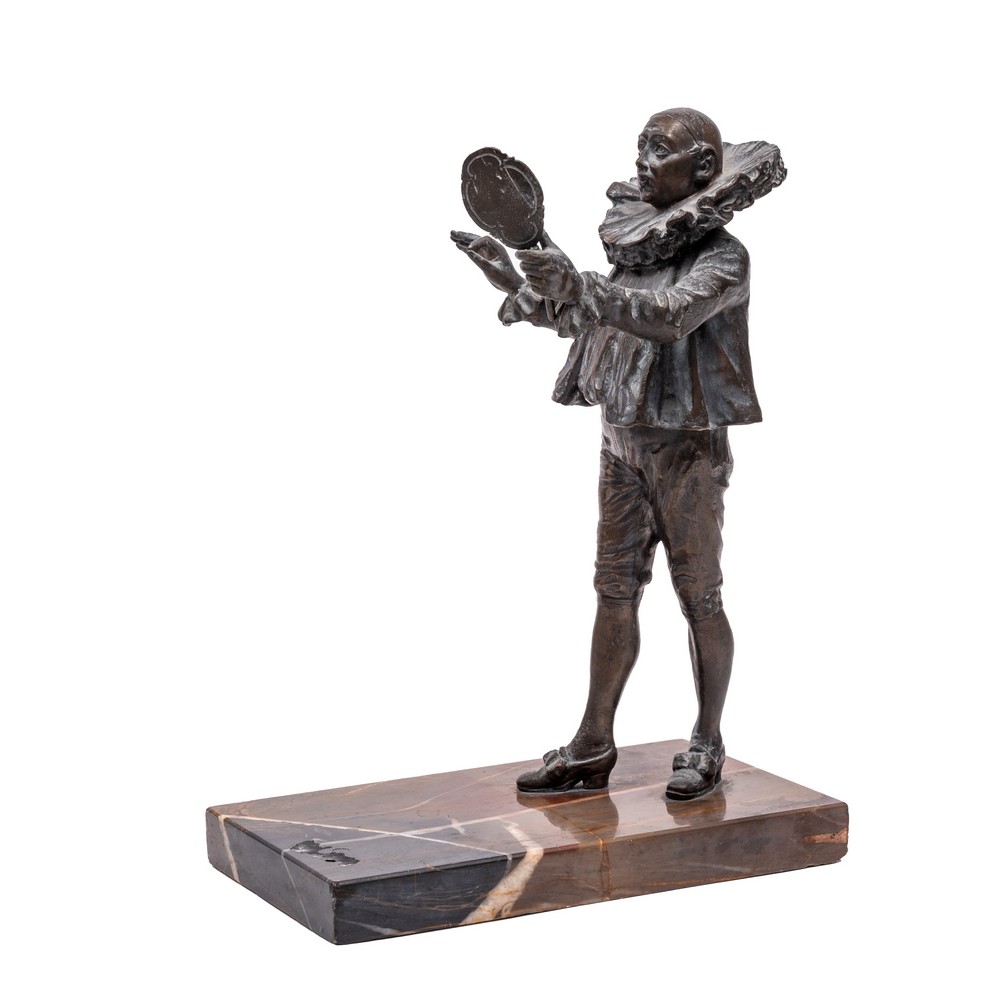 Personaggio con gorgiera e specchio in mano