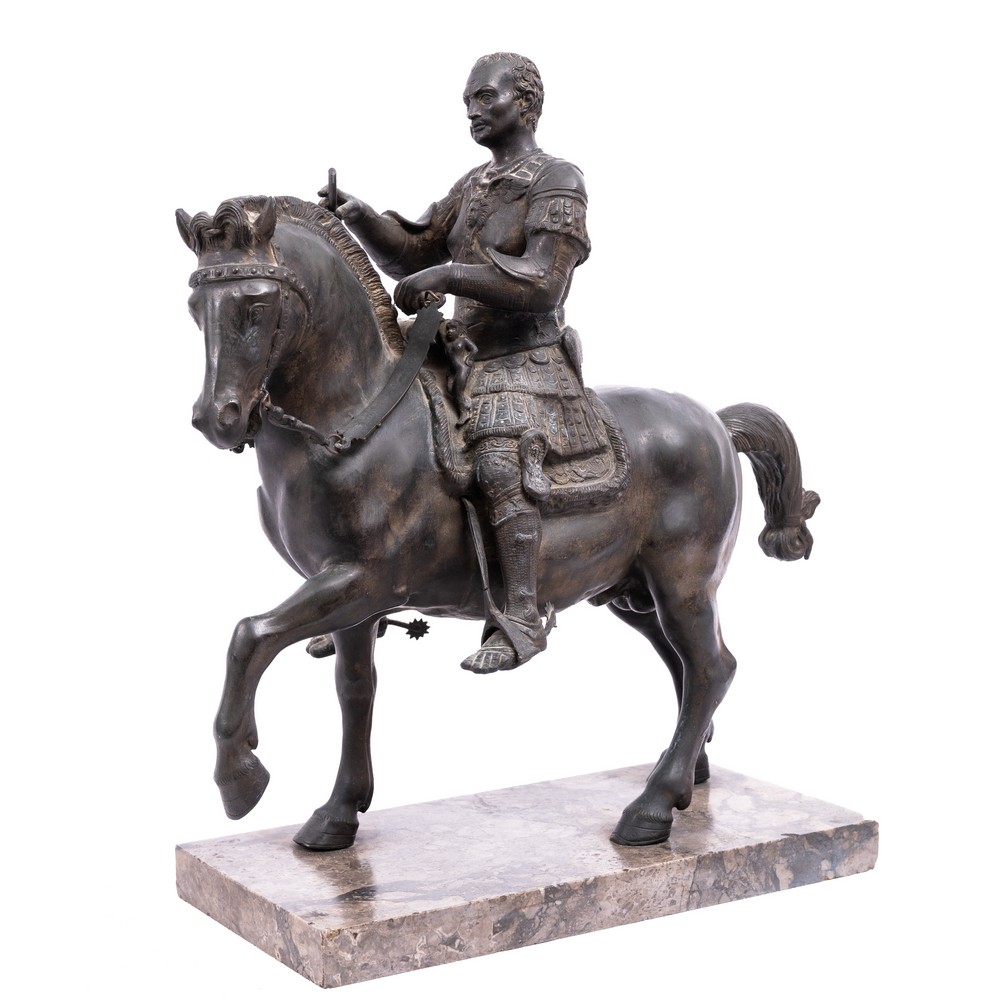 SCULTORE XIX SEC, Giulio Cesare a cavallo, Scultura bronzo