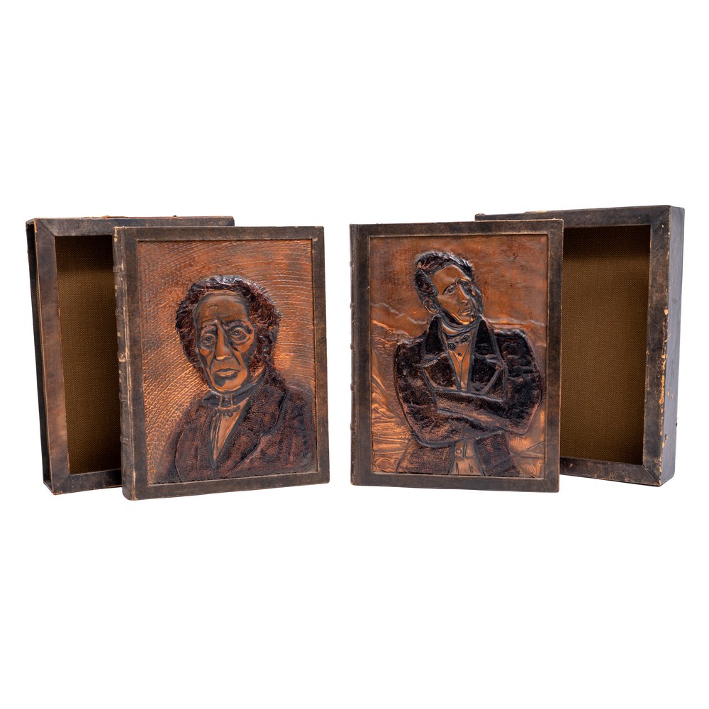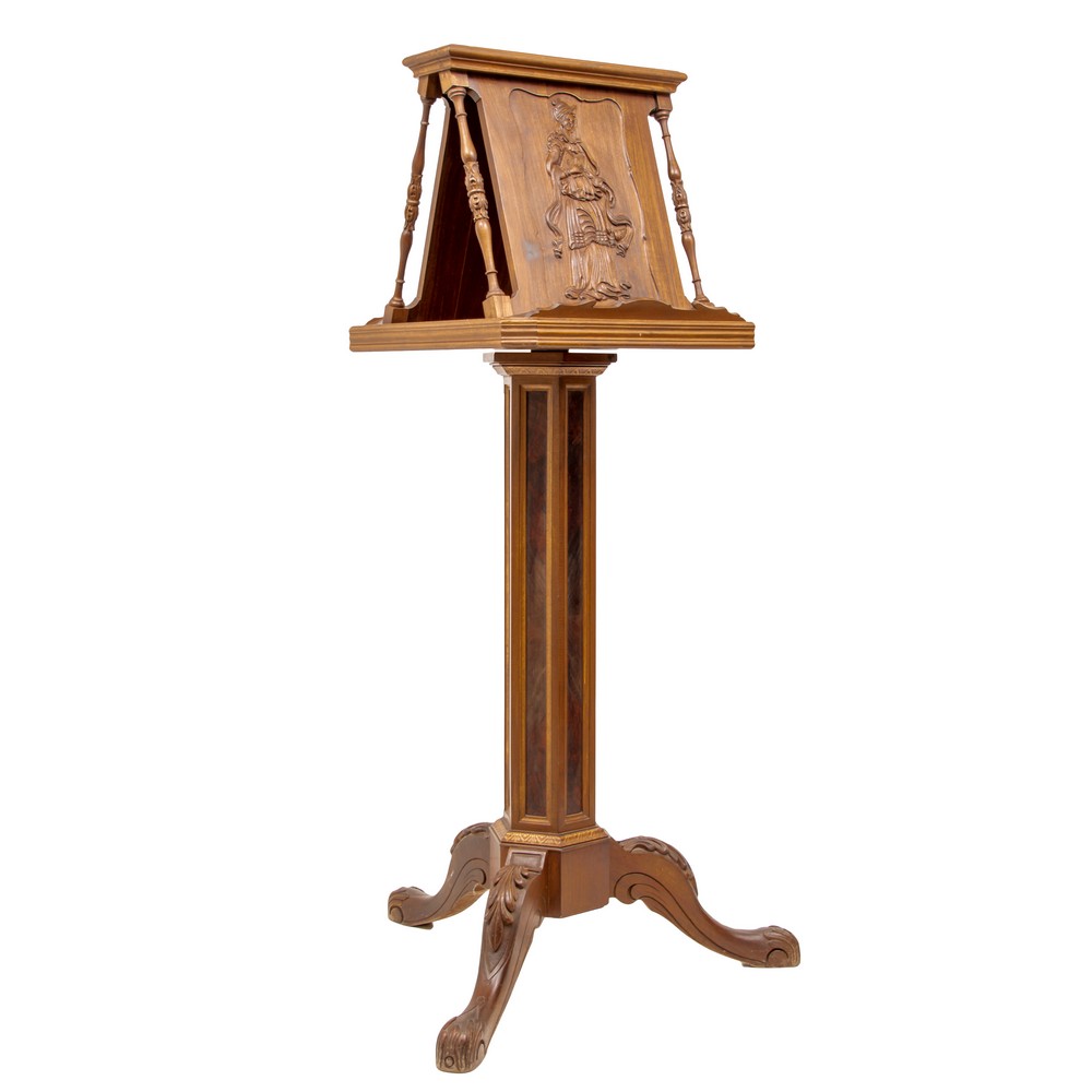 LEGGIO girevole in legno di noce con colonna esagonale, piede tripode e due volumi dei "Promessi sposi I/II edizione Treccani.