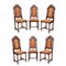 in legno di rovere con seduta e schienale tappezzati con tessuto nei toni del rosso.