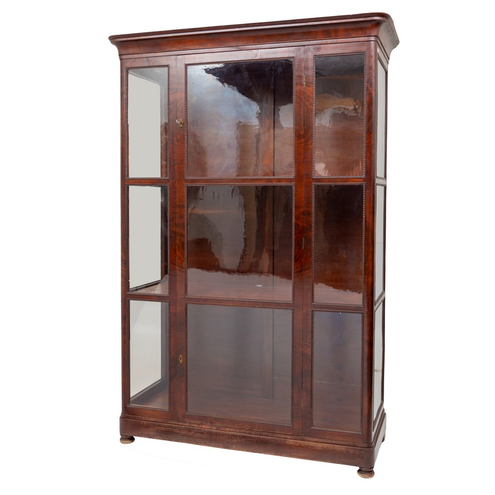 GRANDE VETRINA a giorno ad un'anta in legno di mogano e piuma di mogano.