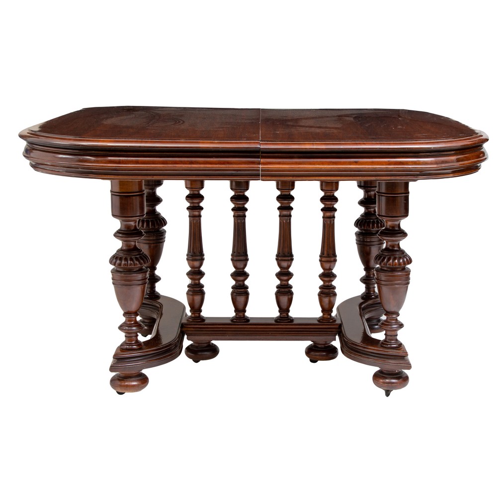 TAVOLO allungabile con quattro prolunghi in legno di noce.