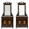 IMPORTANTE COPPIA DI CREDENZE con specchiere in legno ebanizzato con tarsie in bosso, piano in marmo grigio venato.
