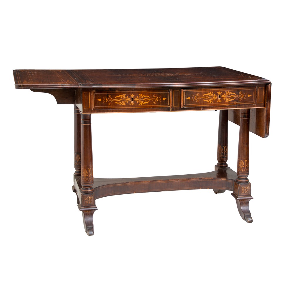 SCRITTOIO Carlo X con alette, con due cassetti in legno di palissandro e tarsie in bosso.
