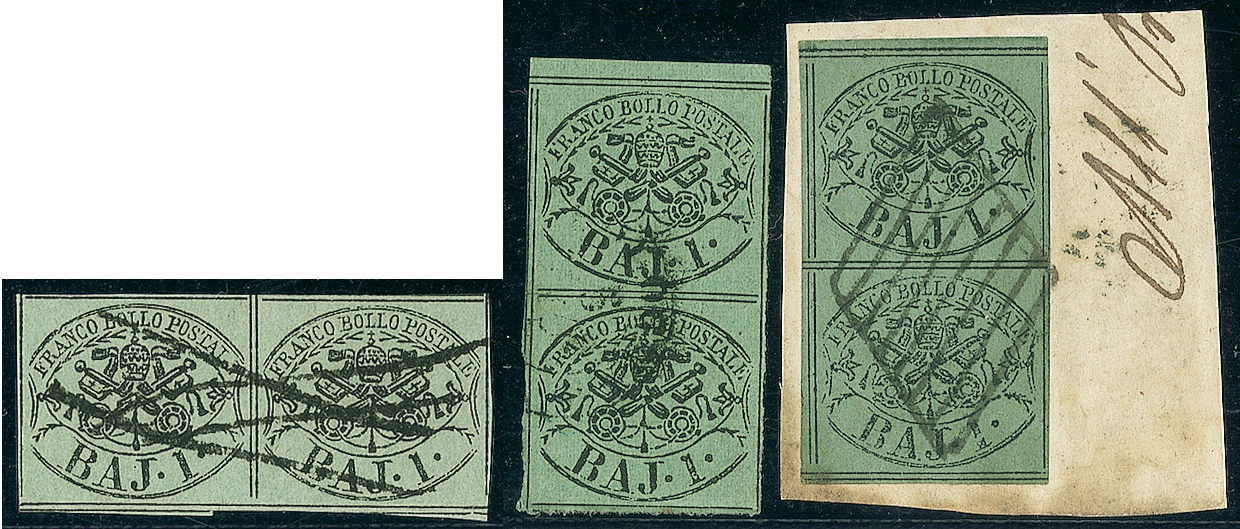 ANTICHI STATI - Pontificio - 1852/1864 - 1 bai - tre coppie (2+2A+2B-580)