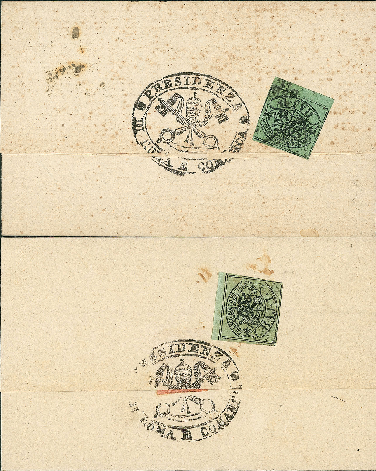 ANTICHI STATI - Pontificio - Preannullati - due lettere con 1 bai al retro...