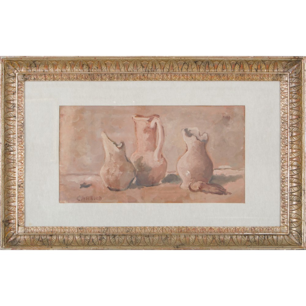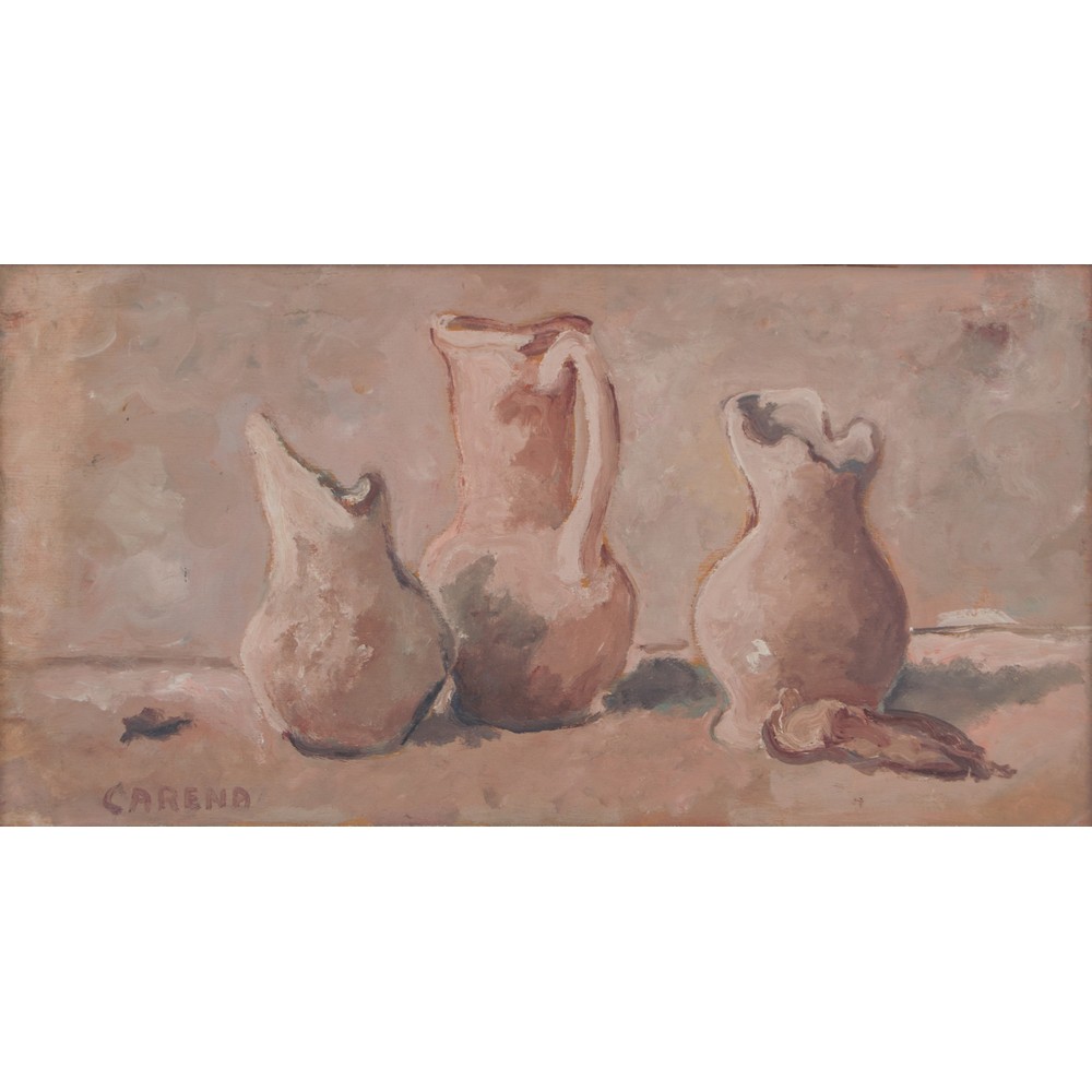 Olio su tavola "Natura morta con brocche" - 1964