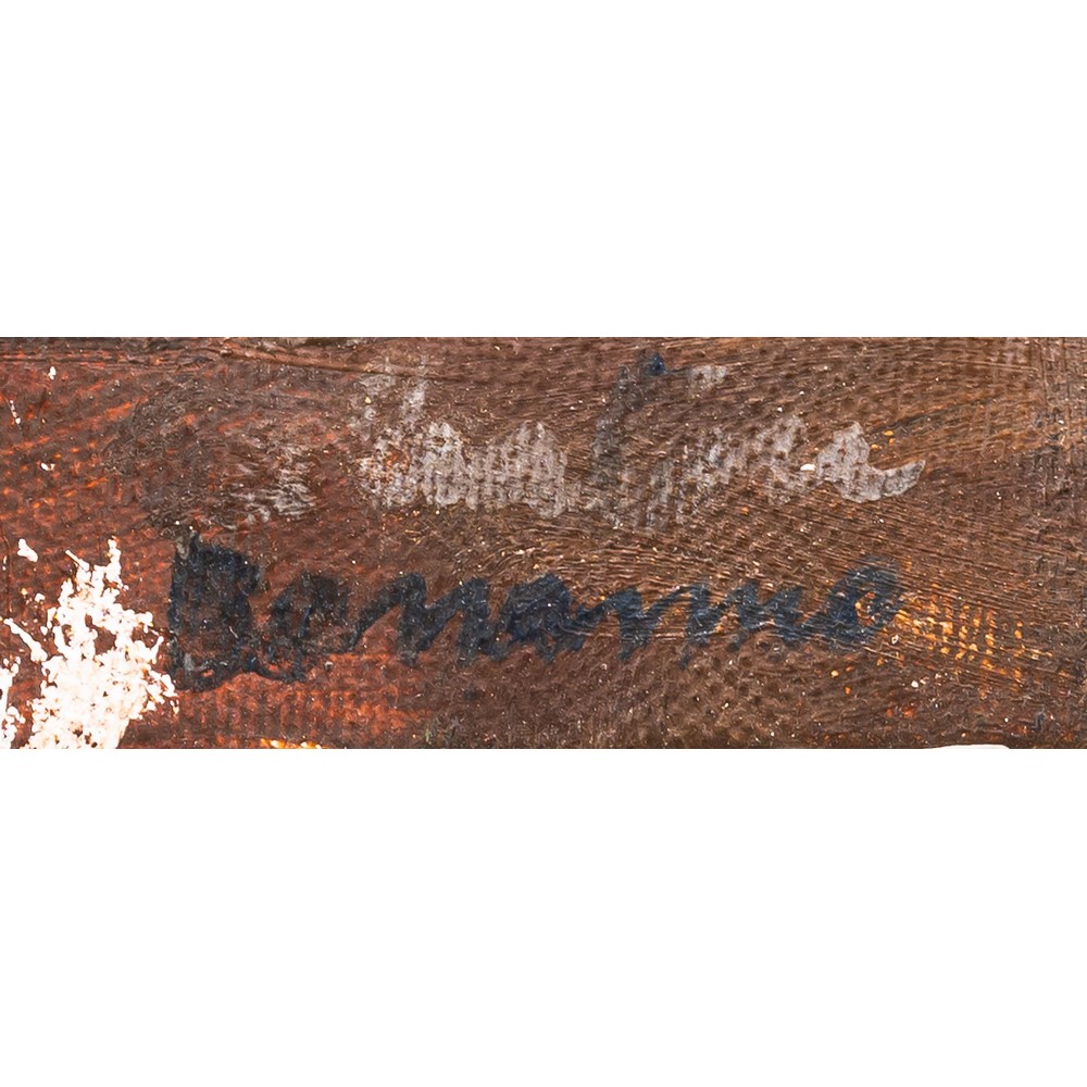 Firmato in basso a sinistra e controfirmato nel retro (firma sul fronte rovinata).