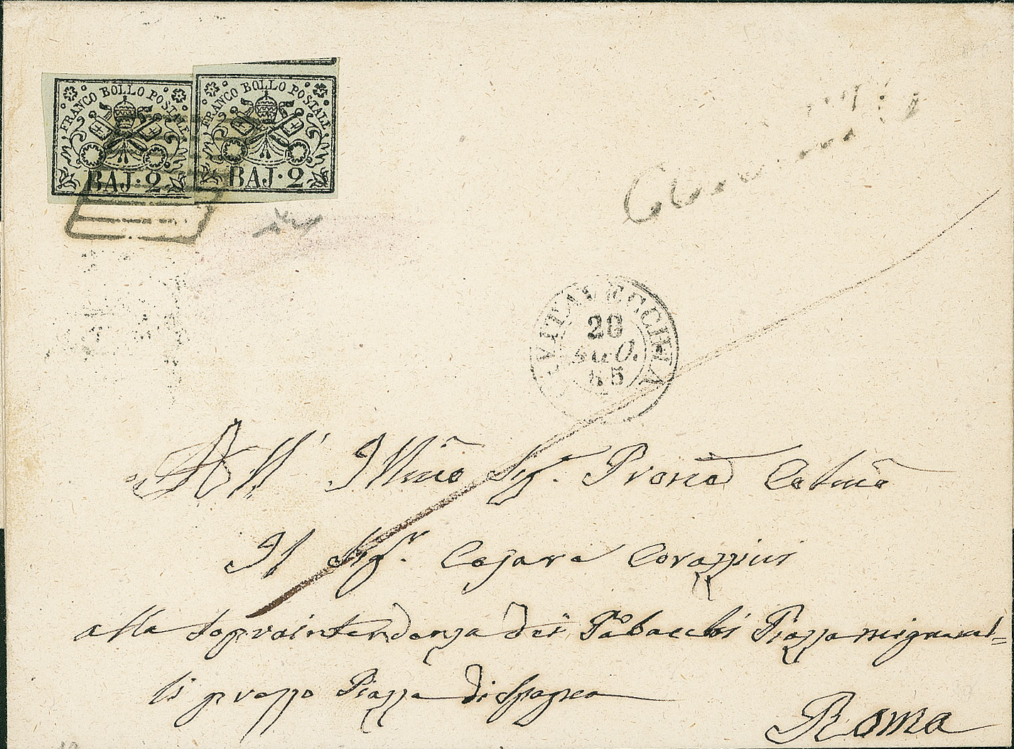 Lotto 185 | ANTICHI STATI - Pontificio - 2 bai + 2 bai - lettera da Corneto a Roma del...
