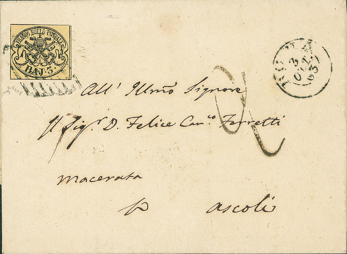 ANTICHI STATI - Pontificio - 3 bai - lettera da Roma a Ascoli del 3.10.63 -...