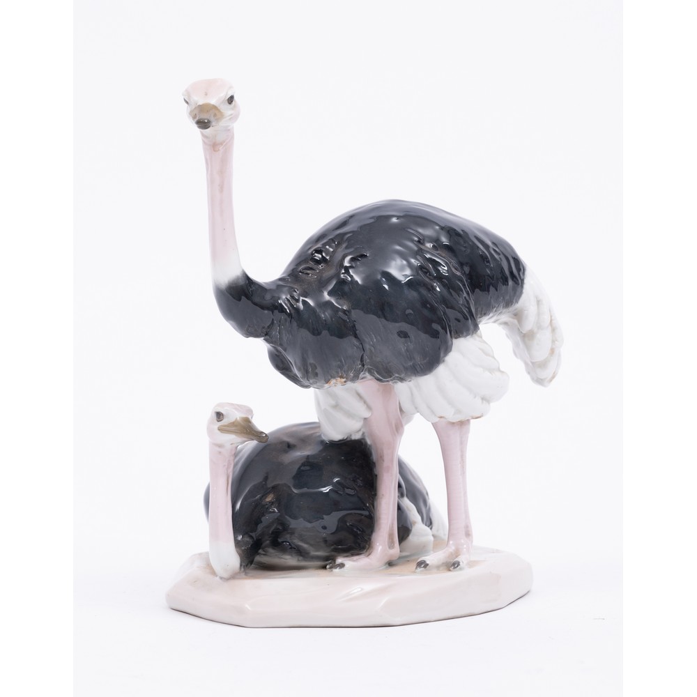 GRUPPO in ceramica policroma raffigurante “Due struzzi”.