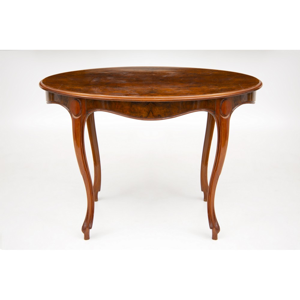 TAVOLINO ovale stile Luigi Filippo in noce e radica di noce.